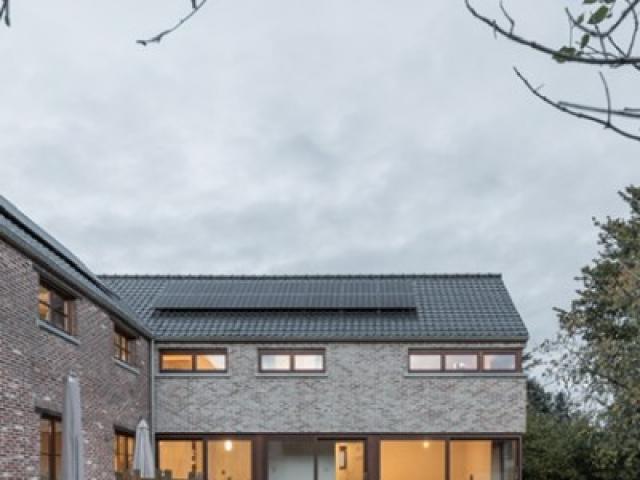 Afin de ne pas dénaturer l'existant et de garder une cohérence, nous avons donc tout simplement projeté ici (en accord avec les clients) la même référence de brique pour le parement de la nouvelle extension. Tout comme sur la partie existante, les châssis sont en bois d'essence Méranti. Ces derniers donnent un caractère très chaleureux à l'ensemble avec une couleur harmonieuse et paisible. Des grandes baies vitrées, en enfilade au rez-de-chaussée, assurent une communion quotidienne avec le jardin et la nature environnante. Ils ne font plus qu'un ! Un sentiment de sérénité commence...